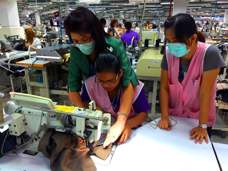 职业技能知识(FSK)项目为同事们配备必要的技能知识,以便更好地履行职责。 2014年,我们的员工进行了逾3.8万工时的实用技能知识培训,以确保其技术能力达到世界级生产商水平。 通过开展培训师培训课程,我们的论题专家同事有机会发展成为培训师,从而进一步促进自身发展,并为联业制衣的成功作出贡献。